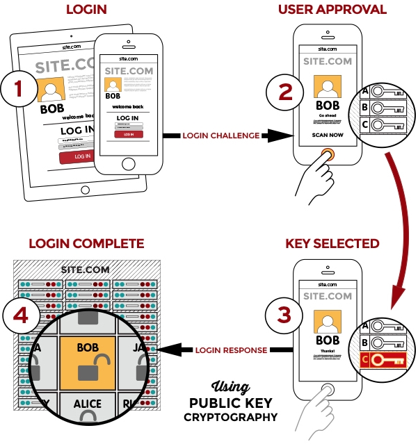 Now the device can find the private key by the Credential ID and complete the challenge.