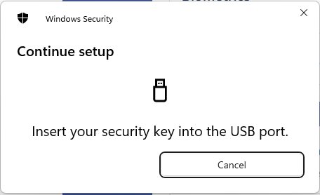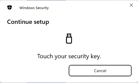 If you didn't specify the authenticator type, it will first ask a platform authenticator. Don't want to use it - press Esc or click Cancel - Now you work with a roaming device. You will need to create a new PIN or unlock the device.